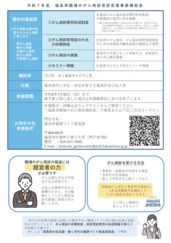 福島県 職場のがん検診受診促進事業補助金 – 福島県ホームページ