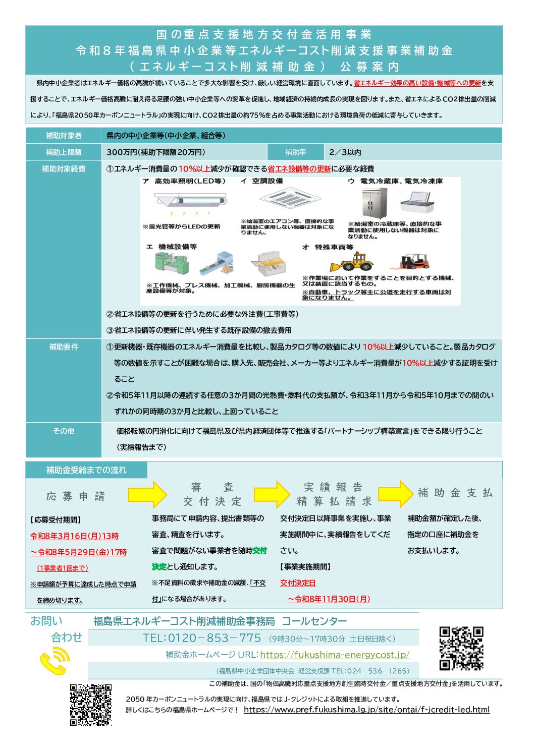 エネルギーコスト削減補助金ホームページ(福島県中小企業等エネルギーコスト削減支援事業補助金)